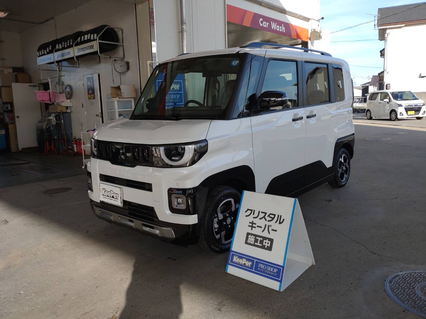 ダイヤモンドキーパー施工中に給油中のお客様があまりの綺麗さに興味を持っていただき、後日施工してくれそうです。