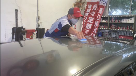 ![]() 一気に塗布していくのではなく部分ごとに塗り込み、拭き上げ作業を進めていきます。 塗り込んだら1回目は3時間以上は硬化時間をおく必要がありガラス皮膜を定着させていきます。 施工は、ボディ以外にケミカルがつかないよう丁寧に進めていきます。